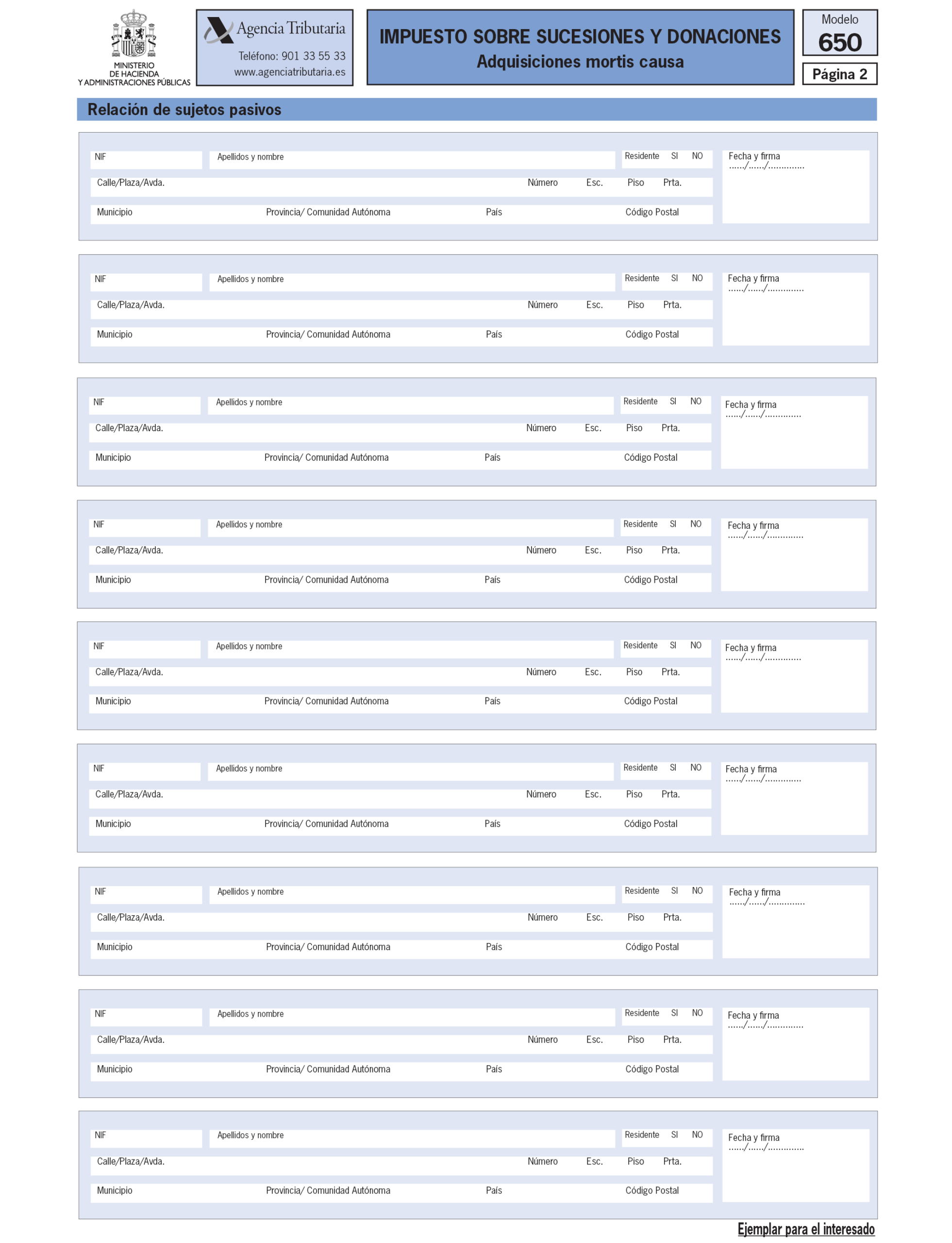 | Spanish Resident | Spanish Resident | Personal | CC. AA. of deceased/donor’s residence | Worldwide |