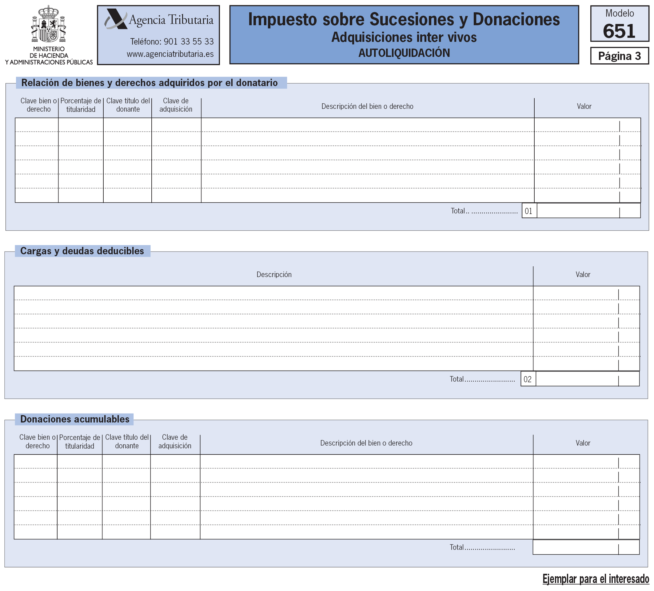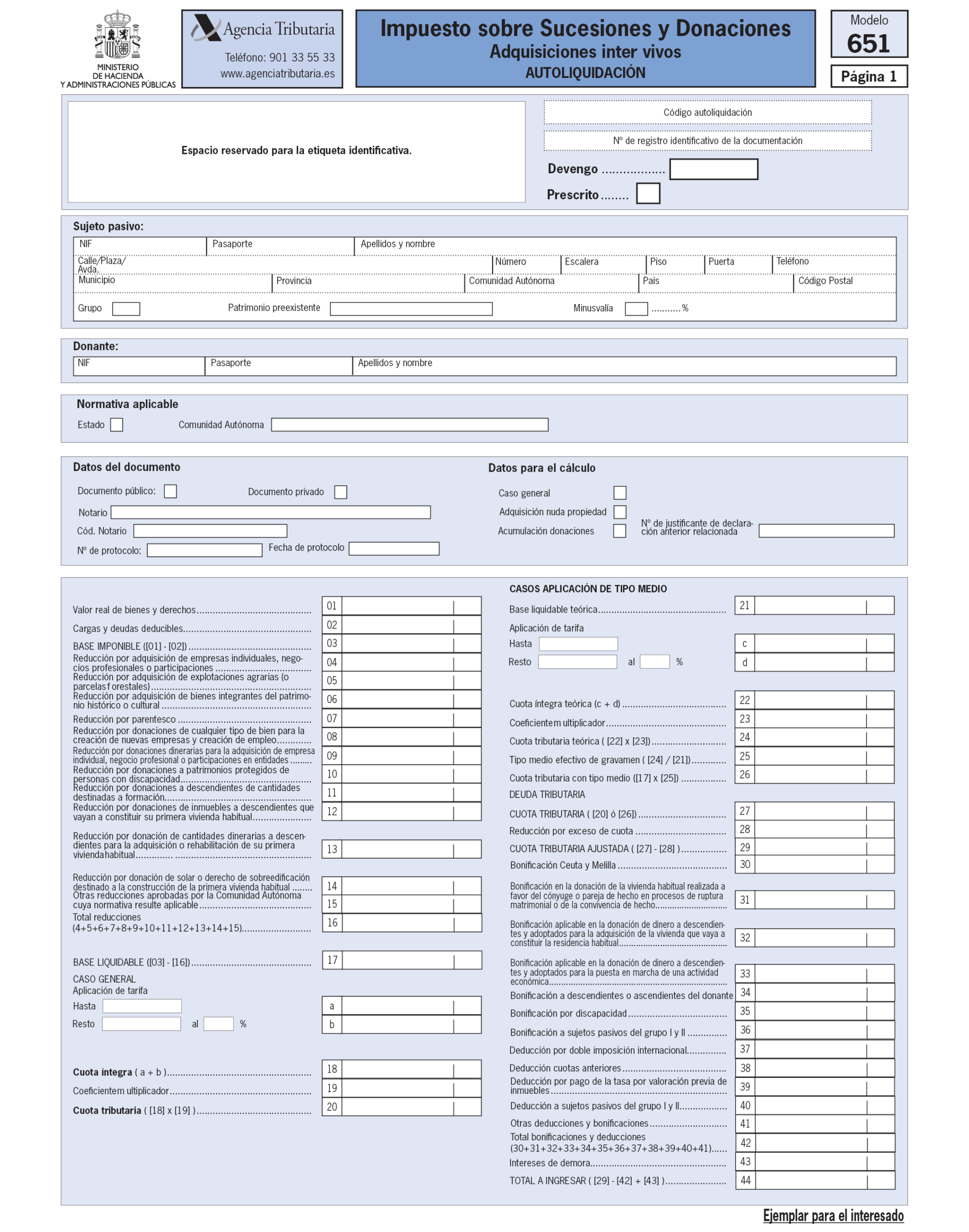 | “Inter Vivos” Acquisitions (Donation) | Form 651 | Acquisition of assets and rights by donation or any other gratuitous legal transaction inter vivos. |
