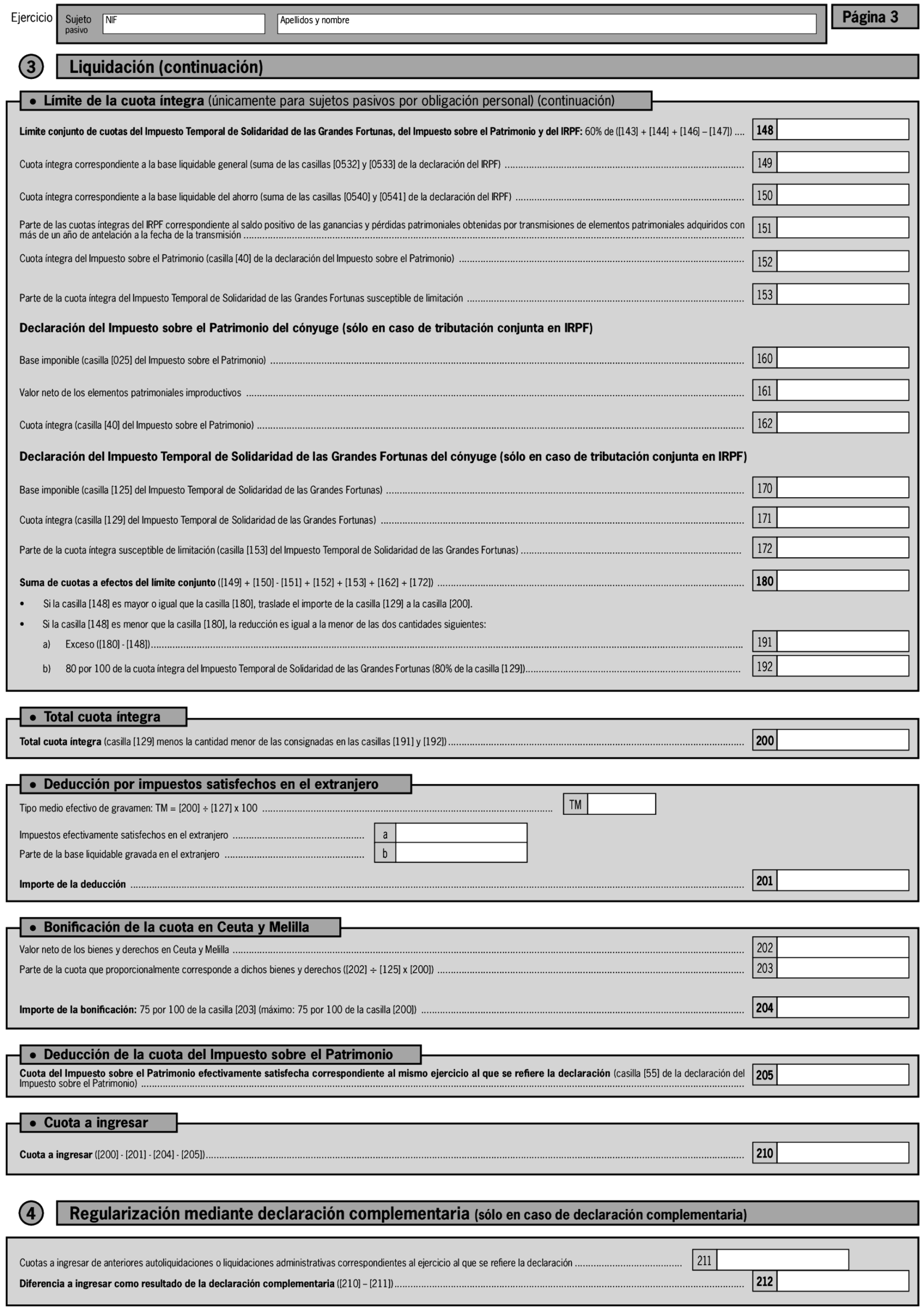 | Who Must File? | Individuals subject to the regional Wealth Tax (WT) must file an ITSGF declaration if the resulting tax rate is payable (i.e., the ITSGF amount is higher than the regional WT paid). |